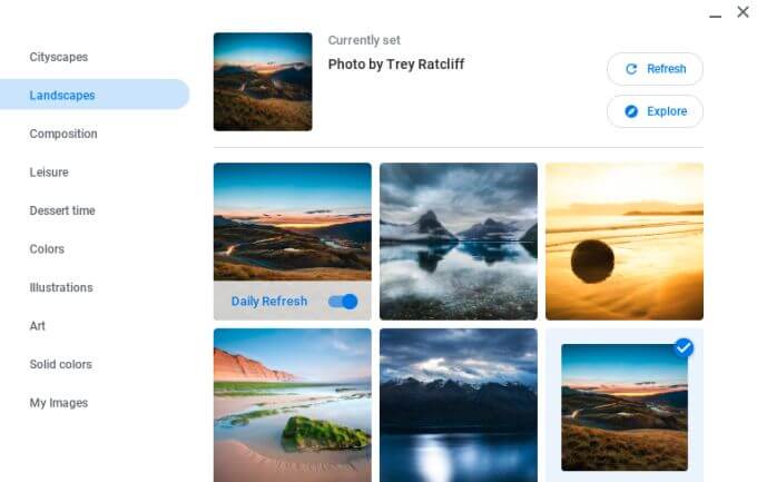 - On the next window, select Citiscapes, Landscapes, or Art. then enable Daily Refresh on the first image to enable the automatic refresh feature.