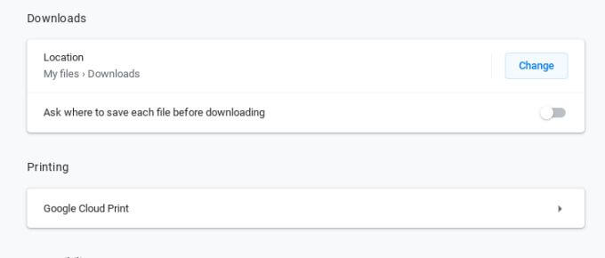 - Scroll down to the Downloads section, and select Change next to the Location option.
