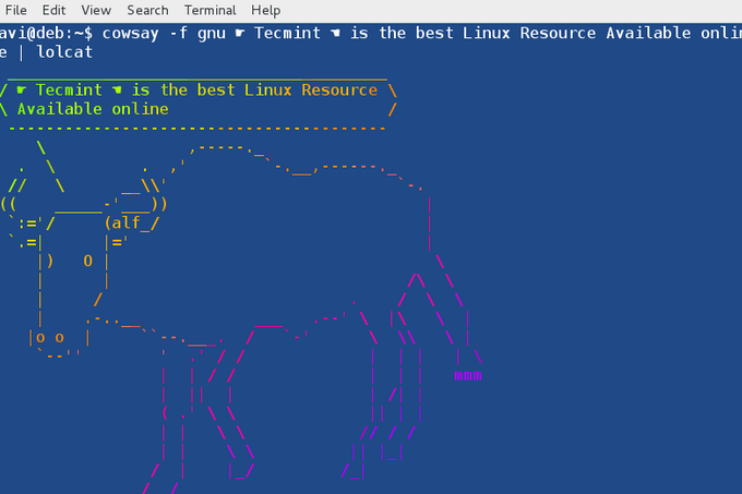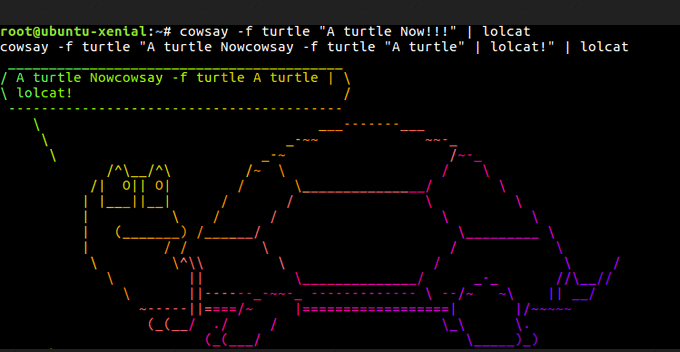 To print your text in fun rainbow colors, use lolcat. To install it, use the code below: **# apt-get install lolcat**