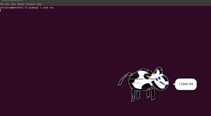 Tell the cow what to think and say using this command: **root@tecmint:~# cowsay I Love nix **
