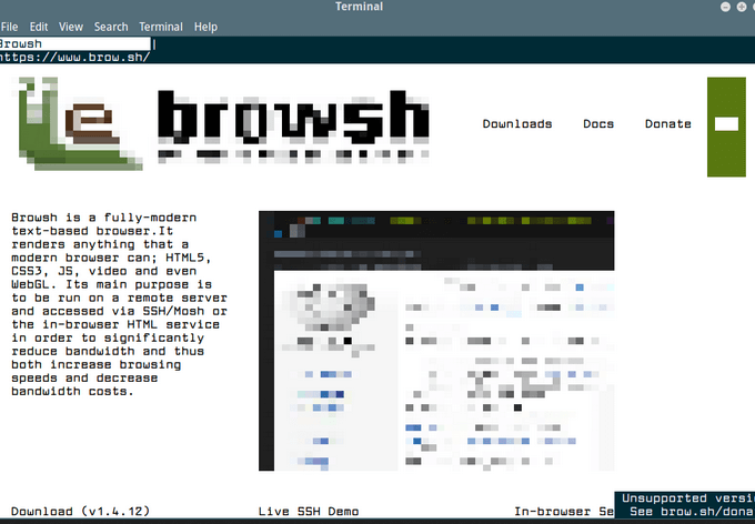 Browsh is a simple, open-source, and modern text-based browser. It is most useful when you don’t have a good Internet connection by helping to avoid draining your battery.