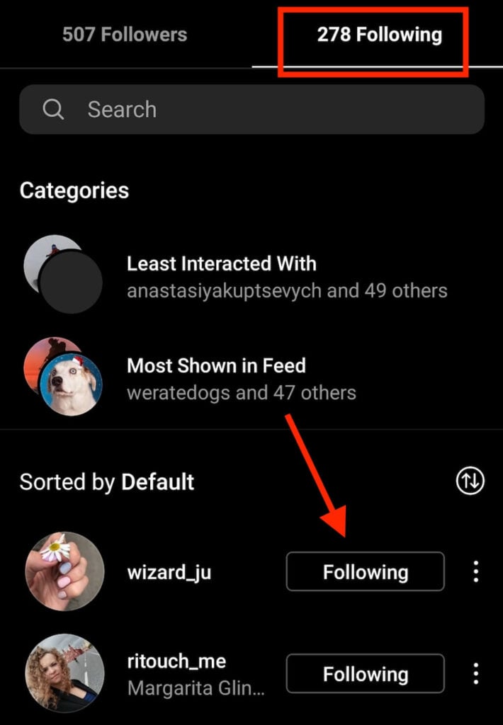 Now scroll down through the list of the people you follow and select Following to unfollow the ones that you don’t need in your feed anymore.
