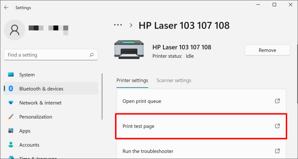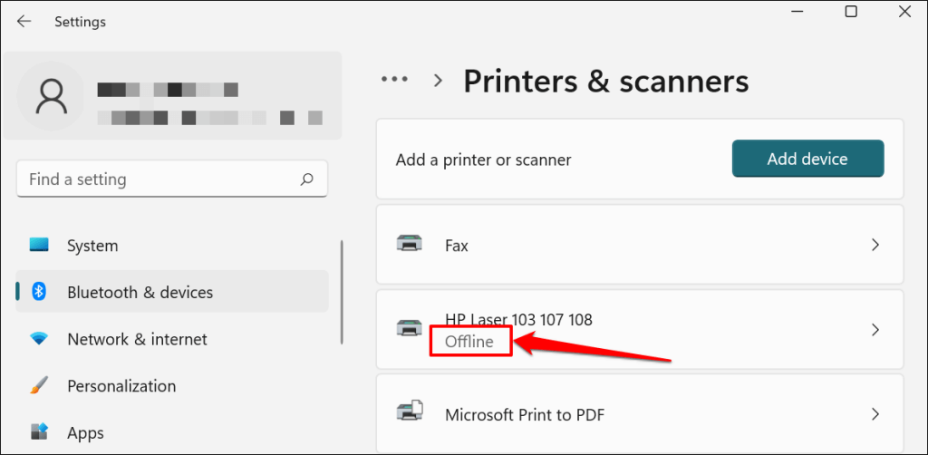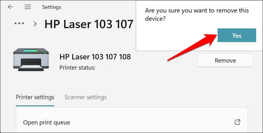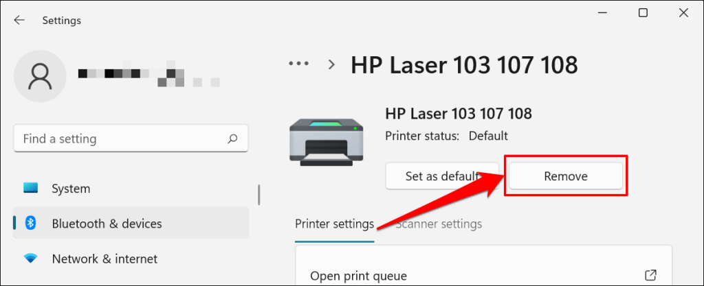 - Go to Settings > Bluetooth & devices > Printers and scanners, select the printer, and select the Remove button.