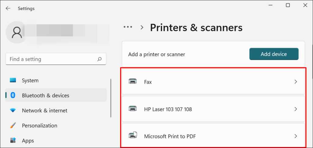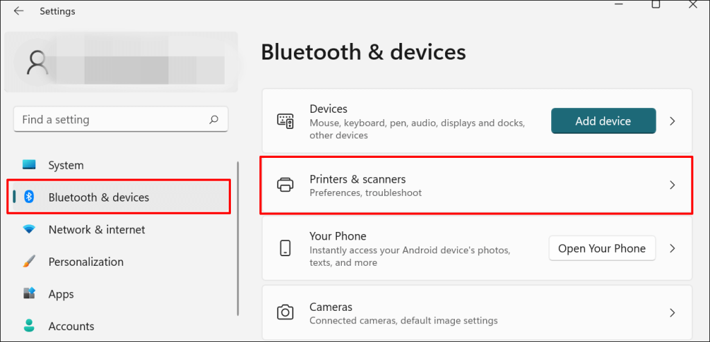 - Go to Settings > Bluetooth & devices > and select Printers & scanners.