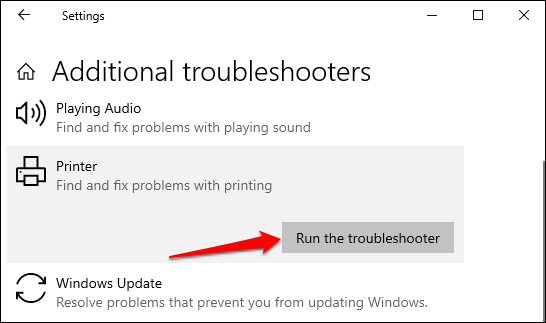 In Windows 10, go to Settings > Update & Security > Troubleshoot and select Additional troubleshooters > Printer > and select Run the troubleshooter.