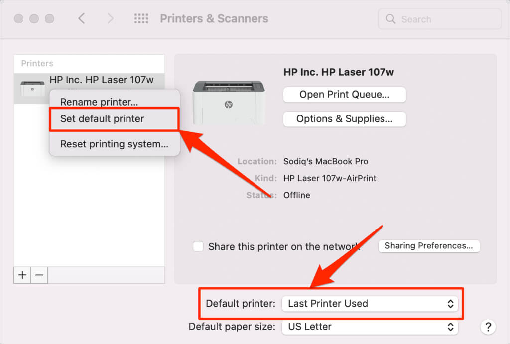 macOS also sets the last printer connected as your Mac’s default printer. Check your computer settings and ensure the active printer is the default device.