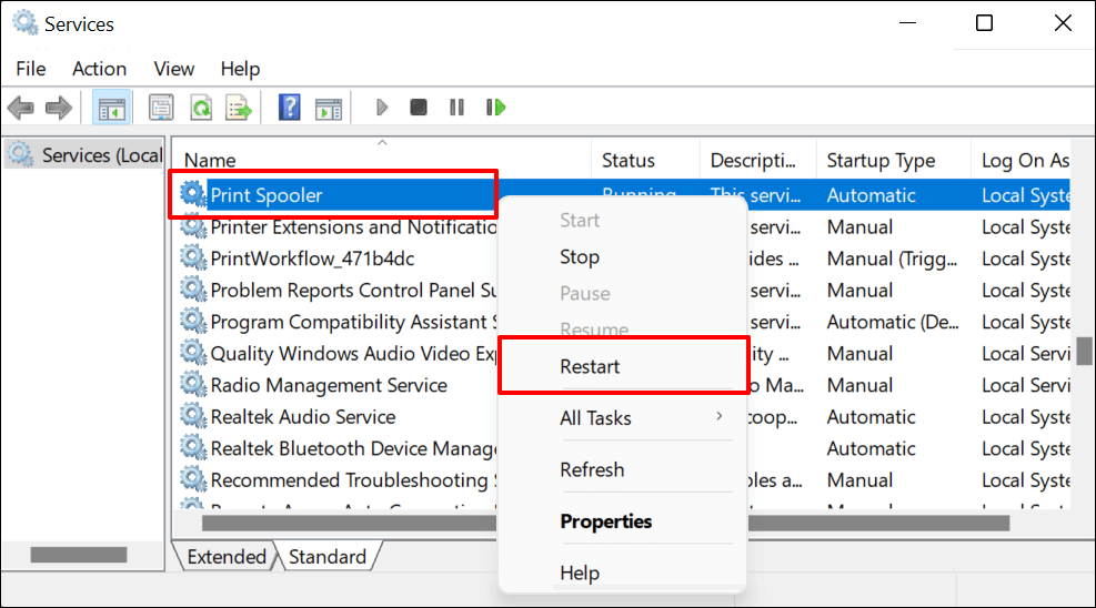 Printer Spooler is the system service that manages printers and print jobs on Windows devices. Temporary system glitches can affect the Printer Spooler’s performance and trigger printing-related problems. Restarting the print spooler service can restore the service to normalcy.