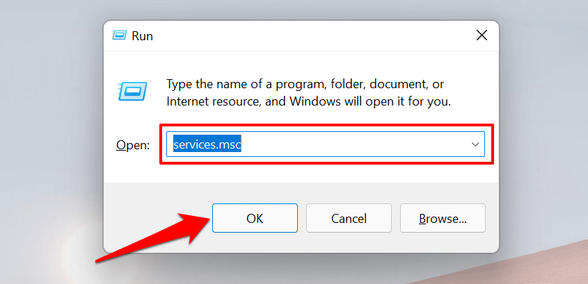 - Open the Windows Run box (press Windows key + R), type services.msc in the dialog box, and press Enter.