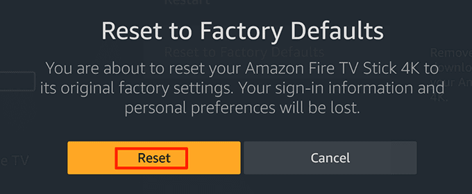 - You’ll get a prompt asking if you want to reset the stick. Click **Reset** to continue.