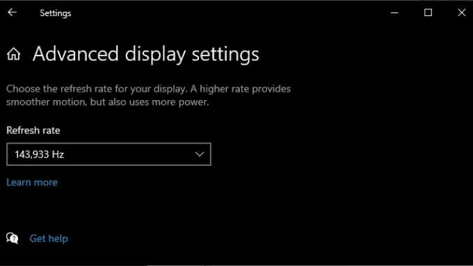 - Under **Refresh rate**, choose the correct refresh rate for your display. If you don’t know the correct rate, 60Hz is usually a safe choice.