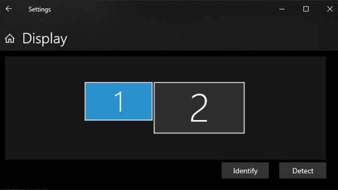 - Select the **display you want to modify**. If your display is not shown in the diagram, select **Detect**. * With the correct display selected, scroll down to **Display resolution** and select the right **resolution** for the screen in question.