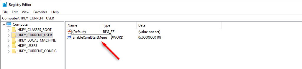 - Name the file “EnableXamlStartMenu.”