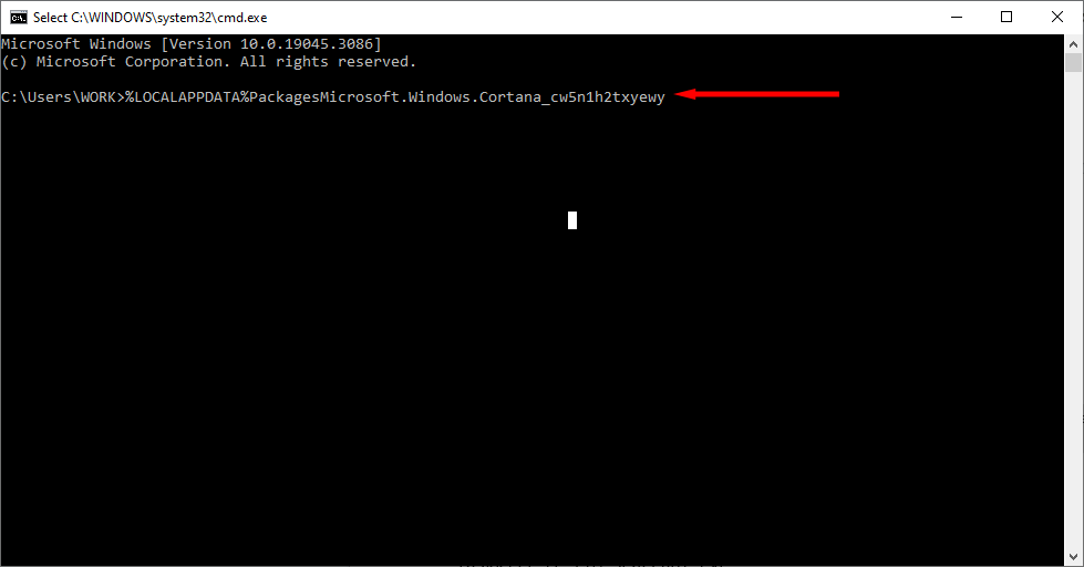 CD/d “C:\Users\USER\AppData\Local\Packages\Microsoft.Windows.Cortana_cw5n1h2txyewy”