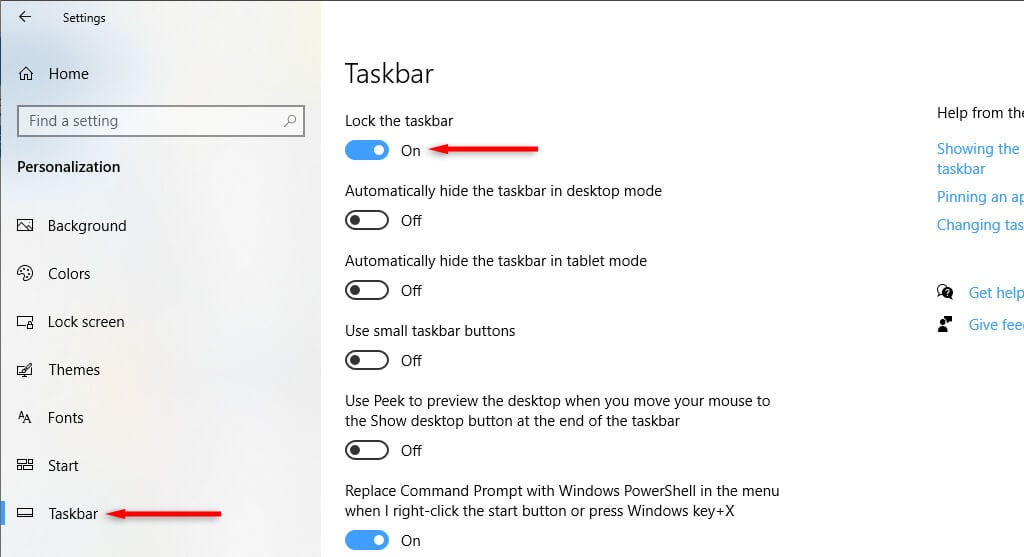 - Select Taskbar. * Toggle on Lock the taskbar.