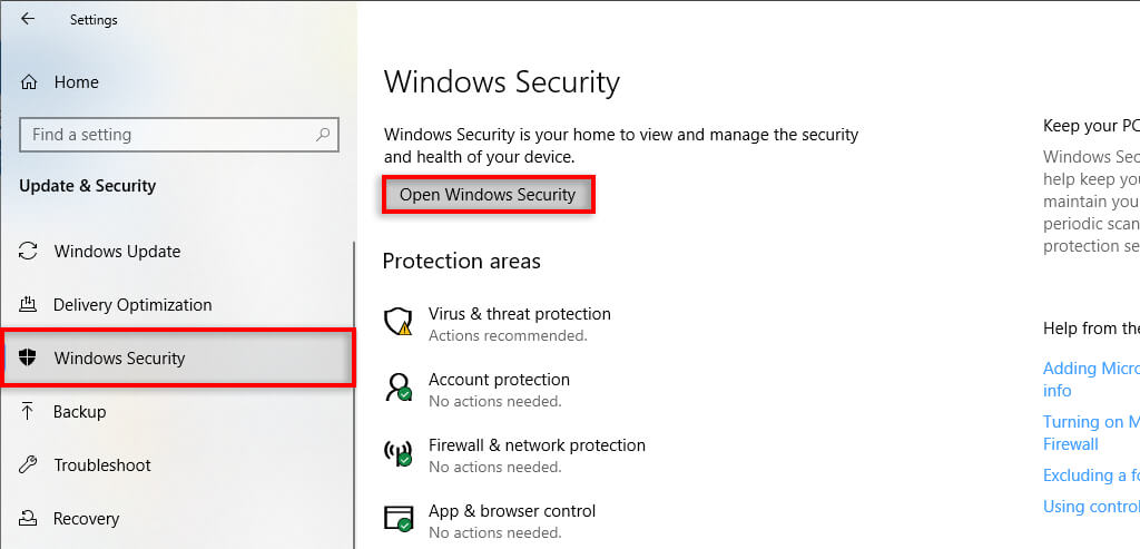 - Select Windows Security. * Select Open Windows Security.