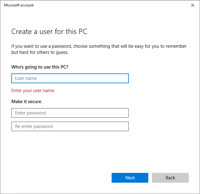 - Select Add a user without a Microsoft account.