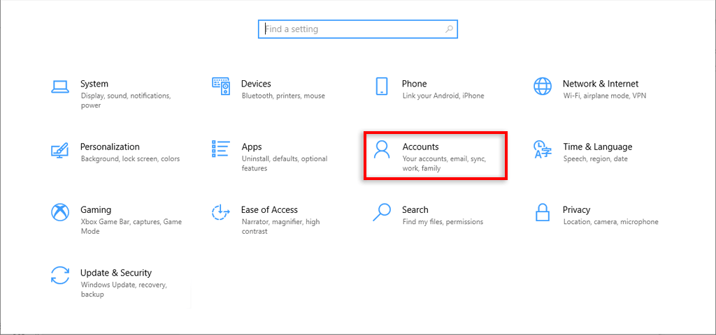 - Select Accounts.
