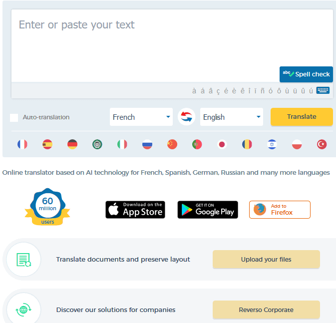 Reverso is an easy-to-use online translator that translates between languages automatically without having to click a button. It also conjugates verbs in all modes and tenses in 13 different languages.