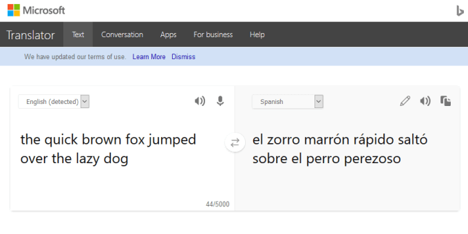 Unlike Google Translate, which offers more than 100 languages, Bing Microsoft Translator offers over 60 languages for up to 5,000 characters, and includes an option to give the translation a little feedback.