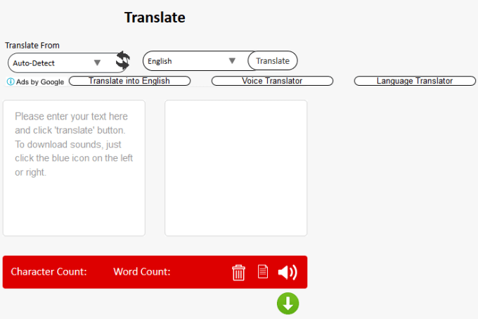 It’s not as easy to use as the first three on this list because you have to press Translate to get the translation on the output box. However, you can also hear the translation out loud, copy or download it.