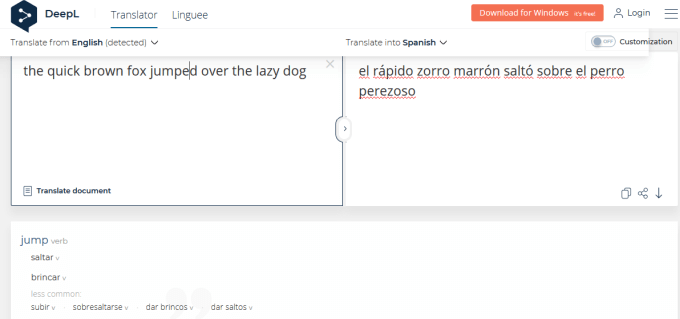 Its translations come from Microsoft so you won’t get as many features as other standalone online translators on this list. It’s still useful for quick translations, and there’s a convenient copy button for the translated text.