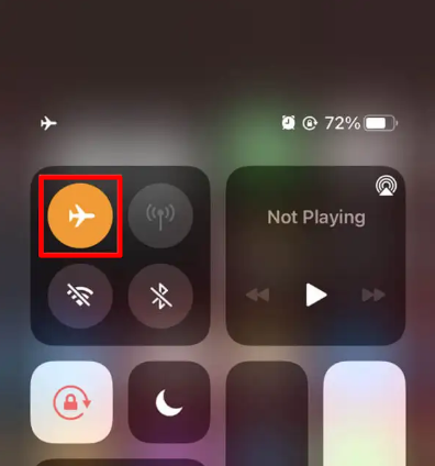 - Swipe down from the top-left of your iPhone’s display to bring up the menu and click on the Airplane Mode icon. This will enable Airplane Mode.