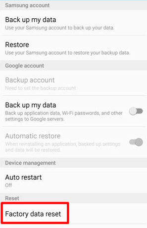 - Go to Settings > General Management > Reset and tap on Factory data reset.