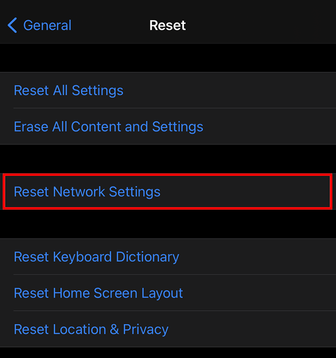 Navigate to **Settings **> General > Reset and select the Reset Network Settings option from the menu.