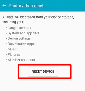 - In the next panel, you’ll have to tap on the Reset Device or Reset button, depending on your Android model.