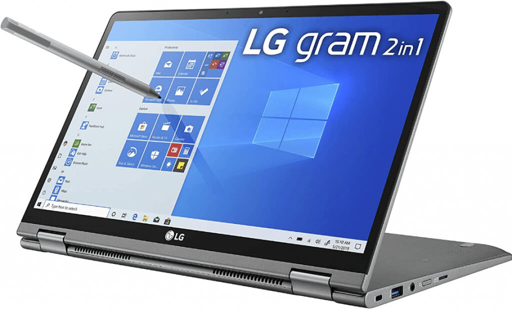 The LG Gram 14 is one of the lightest 2-in-1 touch screen laptops you can buy. It weighs only 2.5 pounds. Additionally, the battery can last up to a maximum of around 20 hours of use if you don’t perform any demanding tasks, so this laptop is ideal for travelers.