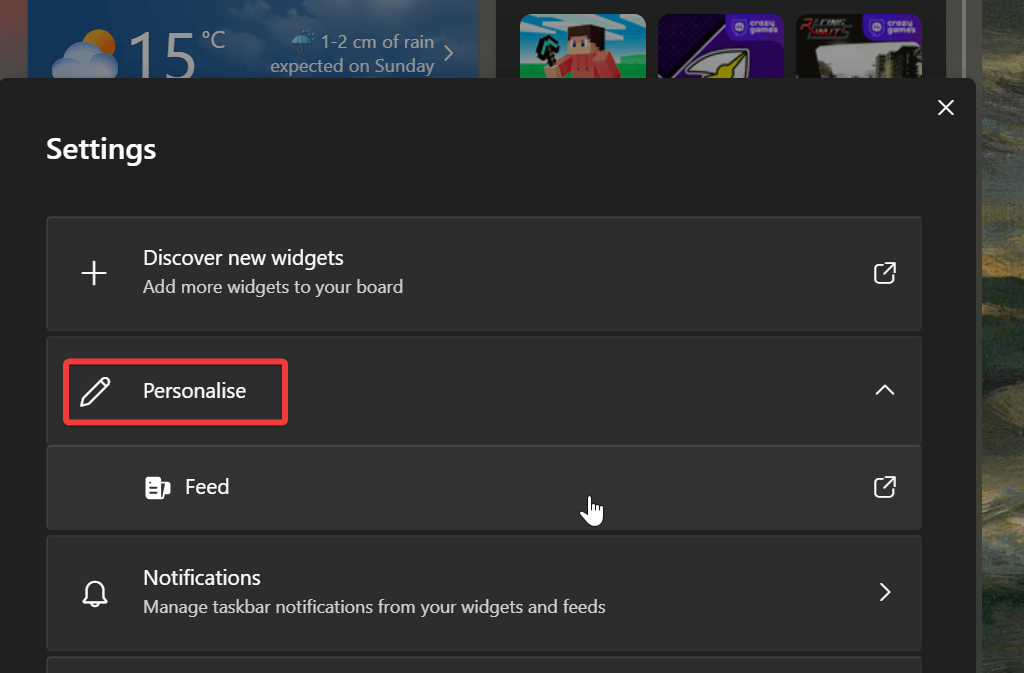 The Widgets dashboard now features a more organized and personalized layout. You can** customize your feed** in the Personalization settings.