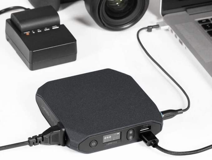 The Omni20+ portable power bank has a super-bright OLED screen that shows you every detail you need to know and two 60W USB-C ports for charging your laptop or other items. Other features include two full-sized USB-A ports and two 45W USB-C ports for less power draw, a DC in/out port, and full-on wall socket.