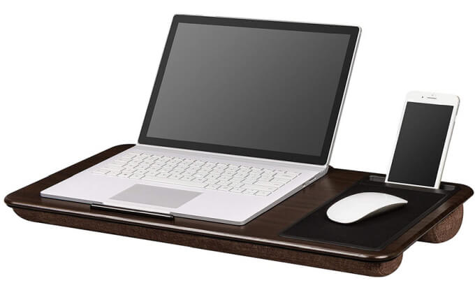 If you work from home and need a good desk for multitasking, the LapGear home office lap desk makes it easy to work on your lap. The desk is comfortable and stylish with ample space for your laptop, a slot to stand your phone, and extra width on the surface for a mouse pad.