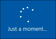 Eventually, you’ll see the blue install screen with a rotating circle and the words Just a moment… You’re almost there. This will take several minutes and go through some more text.