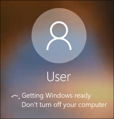 You’ll see your login screen and the message Getting Windows ready. Don’t turn off your computer. That will go on for several minutes. Your screen may go black. Be patient.