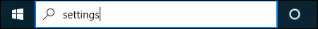 In the **Type here to search **bar, start typing Settings. When the Settings utility is shown, click on that to start it.