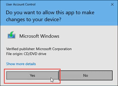 The User Account Control (UAC) window will open asking if you want to all this app to make changes to this device. Click Yes.