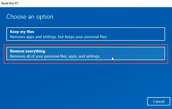 To wipe everything from your computer, click on the **Remove everything **option.