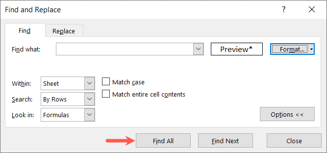 - Complete the following fields: * Find what: Leave this blank. * Within: Choose from the current Excel worksheet or the entire workbook.