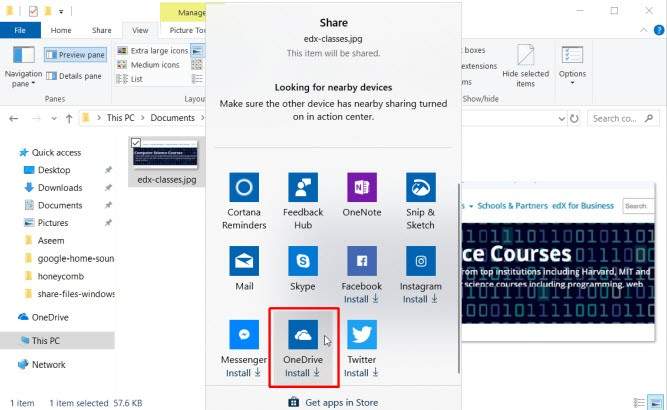 Another approach you can take to transfer files from your Windows 10 PC to other devices is via the cloud. You can do this by sharing the file to any Windows app that supports services like OneDrive or Google Drive.