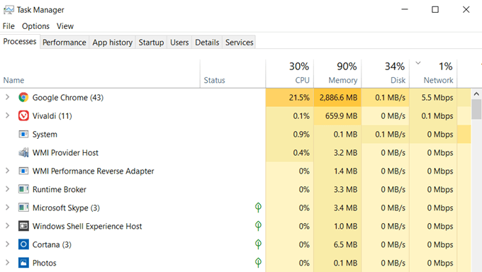 If there are any non-browser processes using up a lot of network bandwidth, you can right click on the process and select End task to close them.