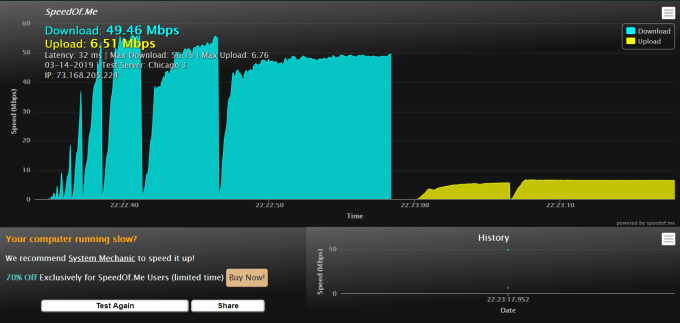 - SpeedOf.Me: This web-based speed test has one of the coolest user interfaces of any available online tool.
