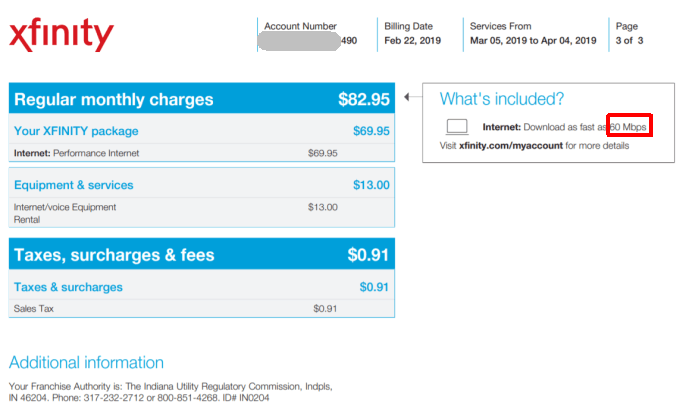 You can usually view the speed of the internet plan you’re paying for by viewing your internet bill. The speed for your plan is typically listed alongside the plan name.