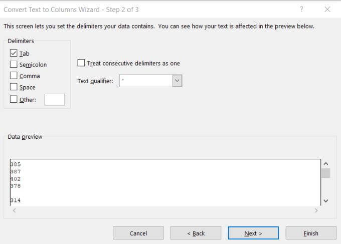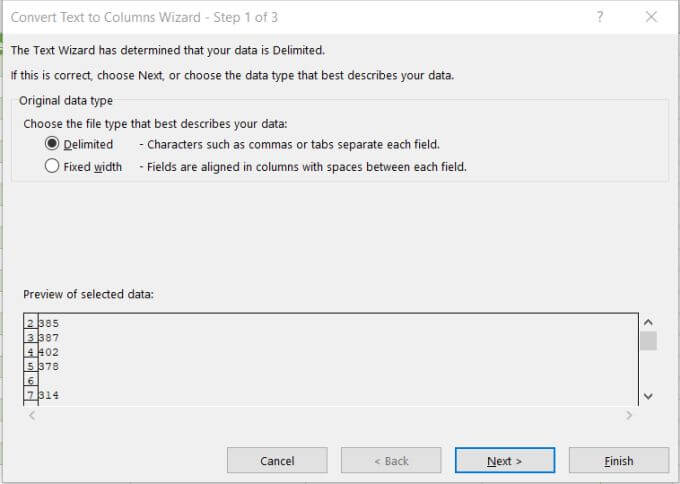Another easy way to convert text to numbers in Excel is by converting over an entire column of values at once. You can do this using the Text to Column feature.