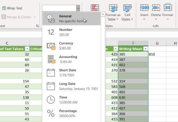 - You’ll see a list of formats to choose from. Select General to convert to number format. Or you can select Number, Currency, Accounting, or Percentage if you want those specific number formats applied to your numerical data.