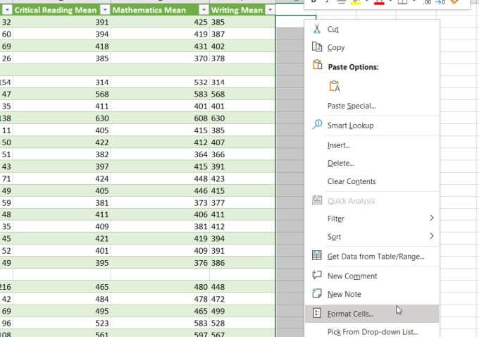- Select the group of empty cells where you want to place your output of numeric data. Select Format Cells from the pop-up menu.