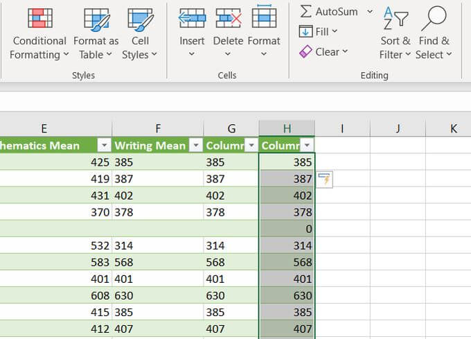 You’ll know it worked when all the numbers in your selection switched from being left aligned to right aligned in the cells.