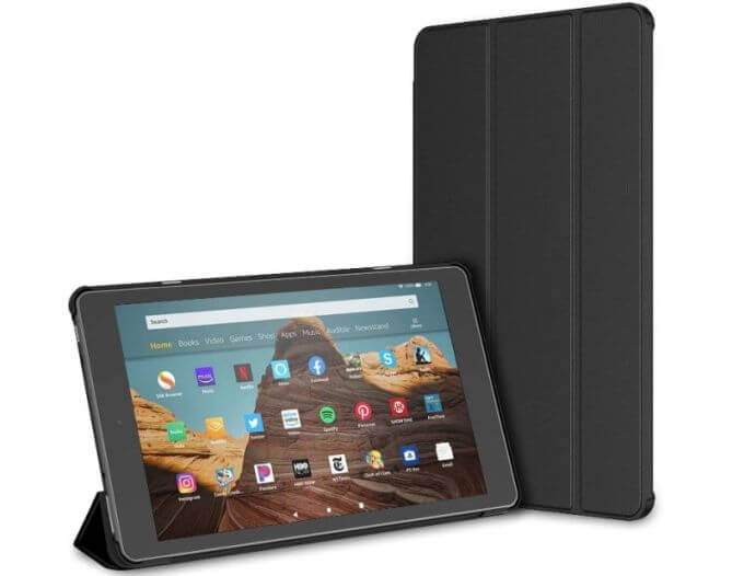 The JETech smart cover for the Amazon Fire tablet is made from a combination of poly-carbonate and polyurethane that combines flexibility with rigid protection.