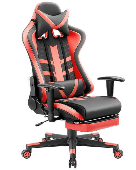 The Homall High-Back gaming chair doesn’t boast many special features. However, what it has to offer is high-quality, and top-notch design. For the price range, this chair is an excellent choice. Its comfortable design is ensured by a removable lumbar and head pillow, adjustable armrests, and a footrest that can be folded so it’s out of your way, or completely removed.