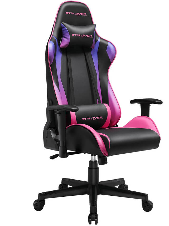 As with many other gaming chairs, you can adjust the height of your GTRACING Pro Series. But this chair also has adjustable armrests as well as a 360-degree swivel and 90 to 170-degree reclining and rocking. You can recline the chair so far back that it’s perfectly comfortable for a quick nap in between gaming sessions. As for design, it’s very stylish and easily fits any gaming setup or home office.